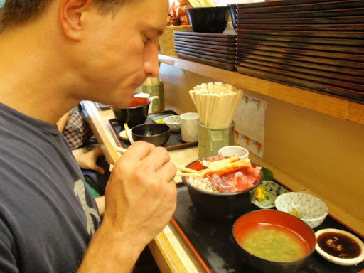 I went to sleep hungry last night and woke up craving something delicious for breakfast. We happened to have some left over Jasmine rice in the rice cooker and a container of salmon roe. Rice with fish eggs is a common breakfast in Japan. When we were in Kyoto, Japan last year I got to enjoy such a breakfast. After visiting the fish market early in the morning we found a neat breakfast spot that served rice bowls with 30+ toppings of your choice. Jerry chose a rice bowl with raw tuna. I chose a rice bowl with fish eggs and sea urchin. The rice and fish eggs were an outstanding breakfast, so was the miso soup and all the deliciously pickled veggie sides. The sea urchin…not so much. I think it was the lack of structure and the mushy texture that put me off the sea urchins.