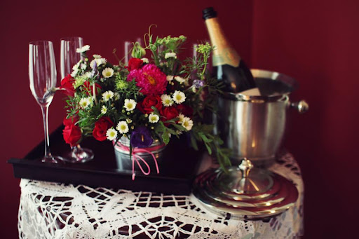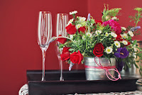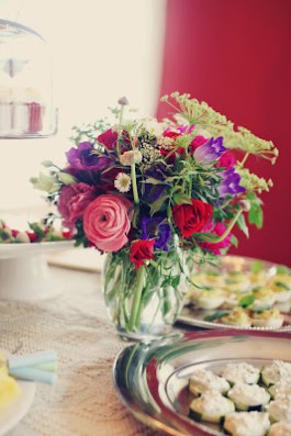 I might have procrastinated with my outfit but by no means did I do so with the rest of the planning. I knew the look I wanted and set out to get it. I wanted flowers, beautiful, spring inspired, bright, colorful flowers that looked like they were picked from the field. I ended up going with a feathery greenery that had tiny white blooms. I do not recall the name of the greenery but any feathery greenery with some baby’s breath flower will give you this look. I chose pink mums with a yellow center, pale pink lisianthus, vibrant pink rununculus, eggplant anemone galilee, red spray roses, purple bell flower aka Campanula, white montecasino, and white sweet pea. To make the arrangements even more girly I added some sheer pink ribbon. My years of working at a flower shop certainly paid off as this flower selection was a tough one to work with, but the flowers turned out beautiful.