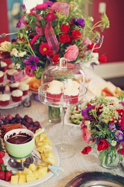 Avocado deviled eggs was another Pintrest recipe and I added mint leaves for decoration and to give the eggs a unique taste. My dear friend Marquita gave me this adorable fondue set for my birthday and even though she wasn’t there to enjoy it with us it was a great addition to the menu. I used dark chocolate for the fondue and the options for dipping were pretzels, pineapple and strawberries. My sister Kristina, a wonderful cook, was kind enough to make her outstanding crab cake recipe with a spicy pepper lime sauce.This dish was delicious and the crab cakes did not last long. My sister in law, who comes from a family of wonderful bakers…and candlestick makers, brought her well renowned banana bread which we cut into small squares to serve. Other delicacies we enjoyed with our tea and champagne included artichoke spinach dip, 2 sandwiches from Alon’s bakery here in Atlanta, amaretto cookies from Alon’s bakery, and my favorite red velvet cupcakes from Piece of Cake. The spinach dip was from Sam’s Club and was hands down the best spinach artichoke dip I’ve ever had, and I feel most of the guests agreed. It wasn’t too creamy as they tend to often be, it had a lot of spinach and a ton of quartered pieces or artichoke. From Alon’s bakery I chose the vegetable and roast beef sandwhiches. These are great for parties because they make the sandwich on a long piece of bread and then cut it into 20 pieces.