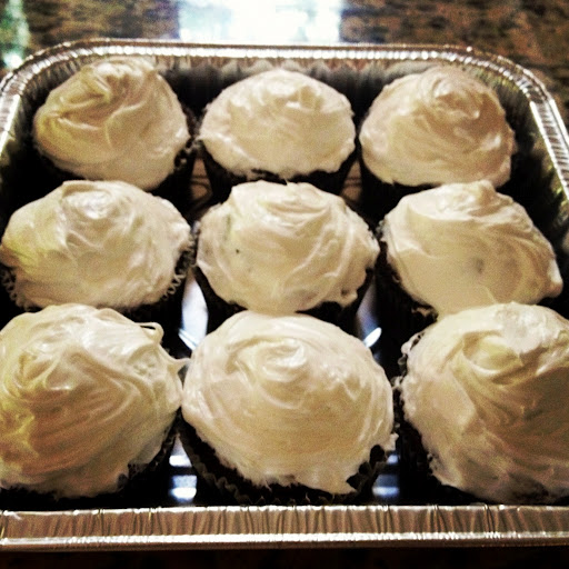 This, I think, is truly an amazing creation. Once again I was in the mood to bake cupcakes, and this time I’m expecting my sister to be in town so the cupcakes are justified. Both my sister and Jerry love chocolate, so I decided on dark chocolate cupcakes filled with chocolate chips, walnuts, and the best ingredient of all, amaretto. I was too lazy to make my cupcake mix from scratch so I used good ole Betty Crocker’s dark chocolate mix and followed the box for the water, oil, and eggs. To ensure the cupcakes were super soft and moist I put a small bowl of water in the oven and preheated the oven to 15 degrees higher than the instructions. This cut the baking time from about 18 minutes to 10 minutes and really sealed in the moistness. It is important not to over bake them; start checking them periodically once they look about ready on top and take them out as soon as the toothpick comes out clean.