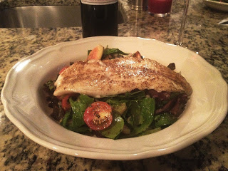 Summer means fig season. This is a great meal that’s healthy, light, and very filling. I served this tomato and fig salad with orange roughy fillets. While I always prefer a flaky fish over a salad, any type of fish, chicken, or turkey would work with this dish. The salad has a lot of flavor so go easy and simple on seasoning the fish or meat of your choice, I simply stuck to salt and pepper.