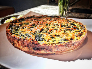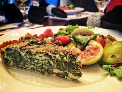 My mother-in-law has an Italian fig tree that has been bearing lots of figs (in fact she just plated and brought us a cutting from her own tree so soon we will have our own figs). I had her bring some figs when she came down and I made a tomato & fig salad. The recipe for this salad can be found in this previous post. I forgot to add the onions to the salad this time around but it was still outstanding. I served the salad with a slice of the Swiss chard tart to start off our dinner.