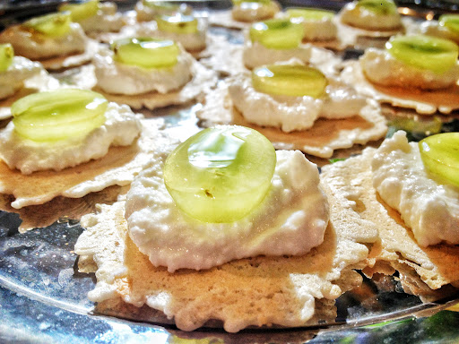 Directions: Arrange your crackers on a serving platter. Top each cracker with ricotta and a grape half. Drizzle with honey. Don’t make these too far in advance as the ricotta will begin to make the cracker soggy after they sit a while.