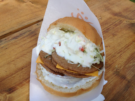 | Forcing down bites of this ‘hamburger’. |