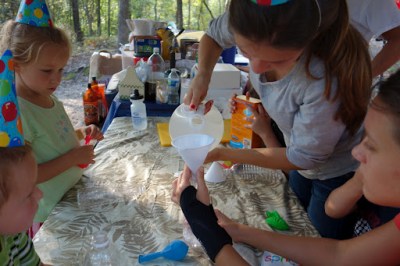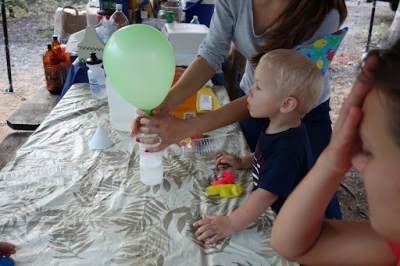 Jerry and I arrived to the camp site Friday afternoon with a brand new mountain bike for my sister Lydia’s birthday from all her siblings. After presenting her with it we set up the tent we borrowed from our friends and then enjoyed a late lunch with everyone. I brought balloons to be blown up as part of the birthday celebrations with intentions of getting the kids involved. So we blew the balloons up via an acid base reaction between vinegar and baking soda. Here is a list of the supplies you need for this fun experiment.