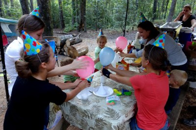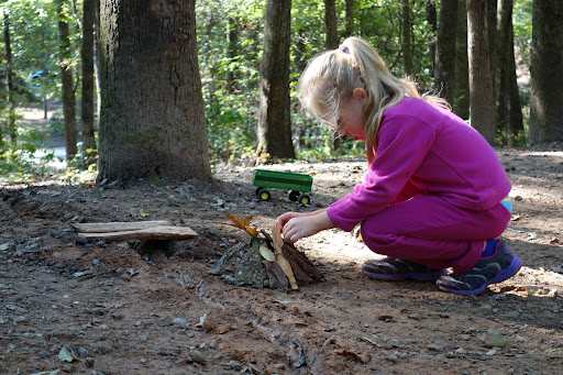 Each of the kids independently enjoyed playing by “the river”. Here Aaliyah built a tepee from tree bark and pretended