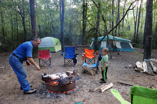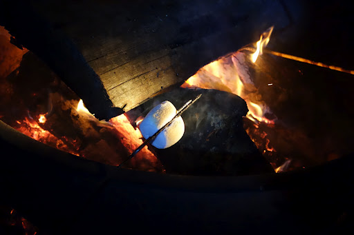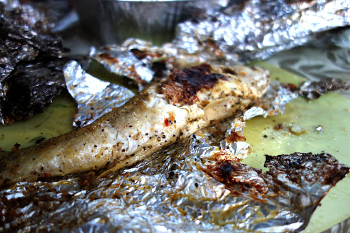 For dinner on day 1 we had fish and potatoes. The potatoes were wrapped in foil and when the fire had calmed down a bit we threw the potatoes in. Some of the potatoes got burned. Perhaps the fire was still too hot or maybe we should have double wrapped the potatoes or taken them out sooner. My mom brought all sorts of whole fish, seasoned them, wrapped them, and put them on the grill over the bonfire. The fish didn’t take long before it was done. Being pregnant I just had a little bit of fish, but it sure was delicious.