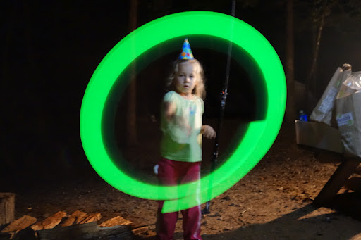 | Lydia perfecting her figure 8 Serge taught her with the glow stick. |