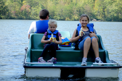 We then set out to find some pedal boats and do some hiking. Kristina, Serge, and Lydia powered the first pedal boat. Jerry and I powered the second pedal boat with Dina and my mom relaxing in the back. The third pedal boat was powered by Paul and Luda with Michael and Philip in the back. We brought plenty of bananas, peaches, plums, and apples to re-energize everyone for the hike afterwards.