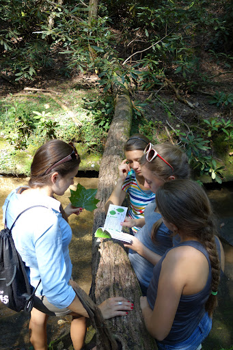 We then headed out for our hike. I brought a dichotomous tree finder guide so everyone could get practice using it to identify a tree of their choice.I also brought some plastic sandwich baggies, large sticker labels, and a permanent marker. Once we identified the tree we picked a leaf off it, put it into a sandwich bag, and labeled it with its common and scientific names. I think everyone really enjoyed this activity.