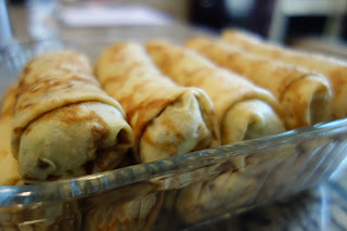 7. Fold in the sides of the crepes and roll the crepes (rolling them away from you).