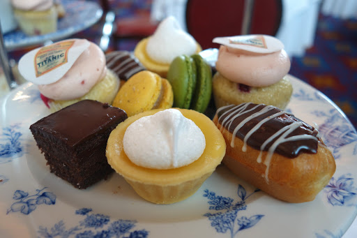 The Titanic was built in Belfast, that is their big claim to fame. Belfast has always been a force to content with when it came to its industry though. Last year, 15 April 2012, was the 100 year anniversary of the tragic sinking of the Titanic. To commemorate this occasion the city of Belfast erected a Titanic museum. There was a lot of controversy about the museum. Many people felt it was celebrating a tragedy. It was built nonetheless, and it is magnificent. There is a room in the museum with a recreation of the grand staircase from the Titanic where they served afternoon tea on Sundays. Of course I signed us up for this afternoon tea event. They gave you a list of teas to choose from and serves a try with lots of little yummy things. Some of the desserts served were exclusively served on the Titanic.