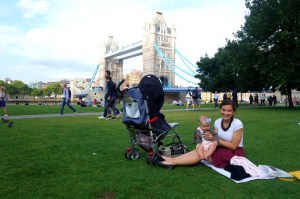 We stayed at the Andaz in London. The room was not ready for us to check in yet so we dropped our bags off at the hotel and went out to find something for brunch. We found a nice looking cafe not far from the hotel. Lydia went with a bagel and lox and I had one of their amazing looking dessert, a strawberry spongecake with peppermint tea. We then headed towards Old Spitalfields Market. We browsed the market and nearby shops until we got an email letting us know that our room was now ready for check-in. After checking in we got ready for dinner and headed back out on foot to check out Tower Bridge. I love Tower Bridge, it’s just so beautiful. We missed the cut-off for the last tour for the day by a few minutes so we continued across the bridge to Potters Fields Park. We walked around until we found a frozen yogurt place and enjoyed our frozen yogurt on the lawn with the most spectacular view of the Tower Bridge.