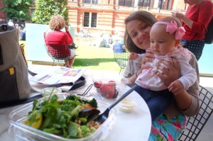 Enjoying lunch in the garden of the Victoria & Albert museum.